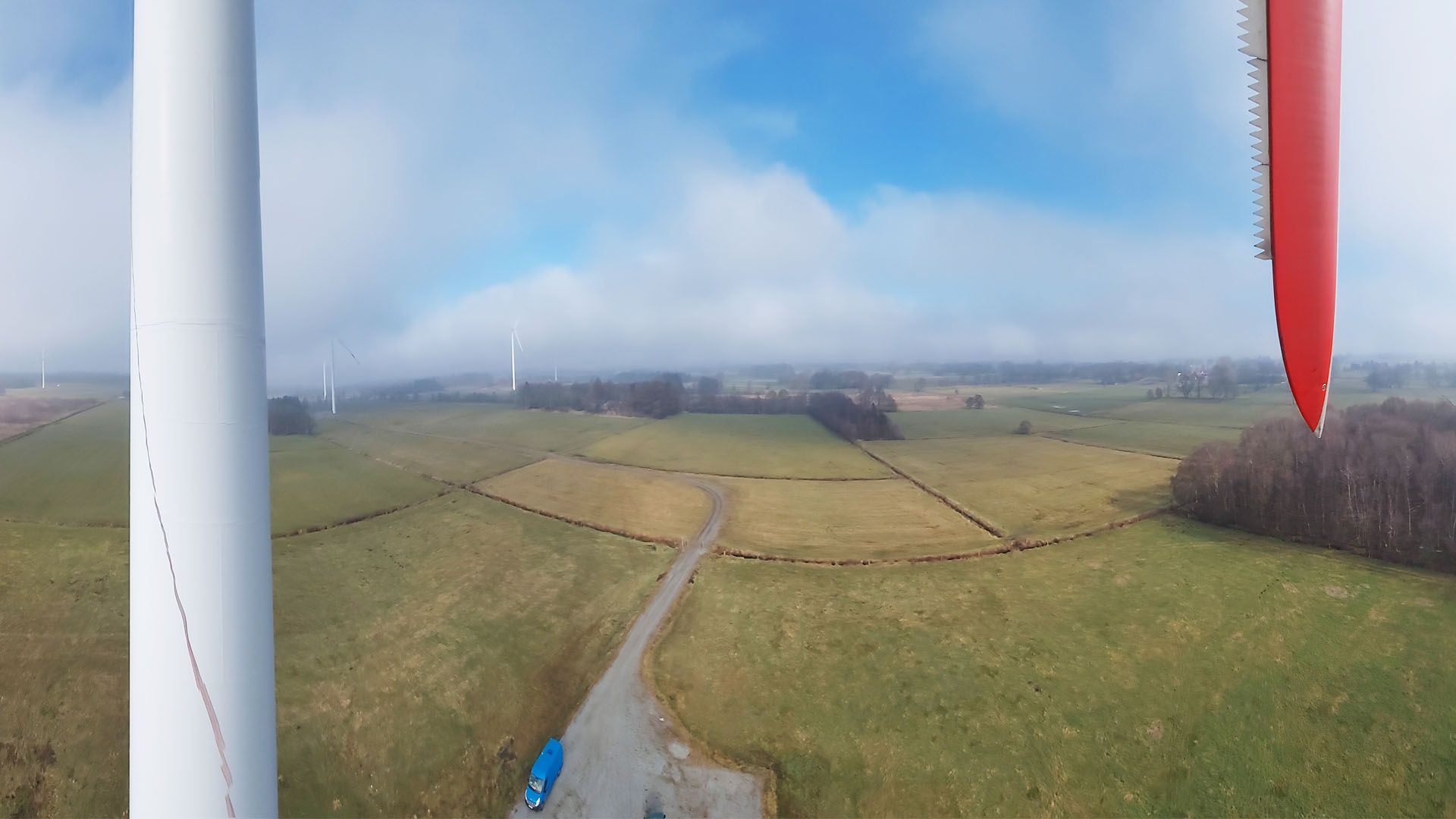 Zur Zeit sind wir in einem Windpark mit 10X AN1000 in der Nähe von Cuxhafen und begutachten Rotorblätter